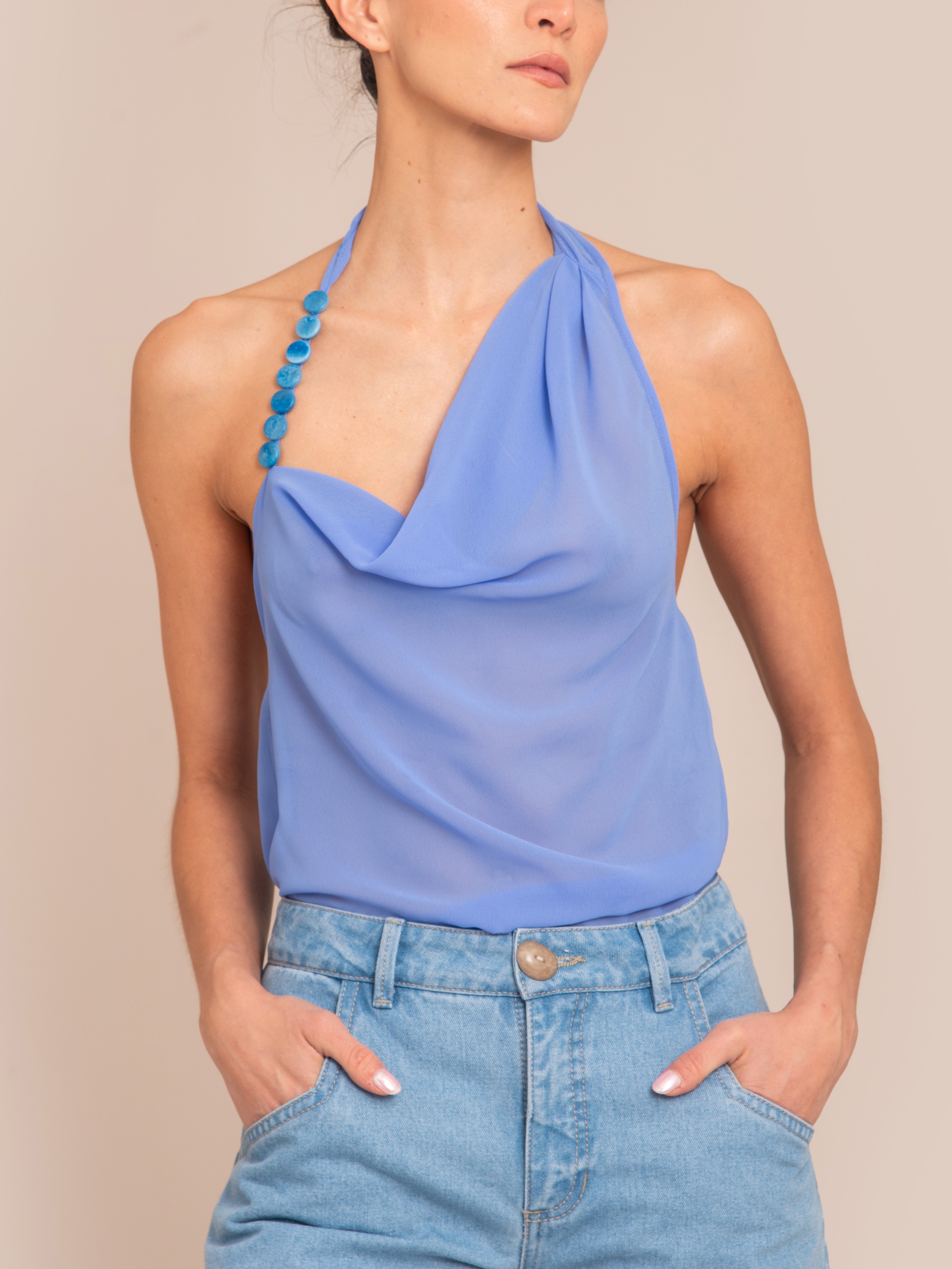 KOEMI BLOUSE IVORY NAVY SWIRLS