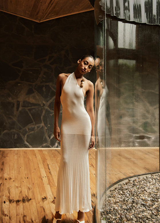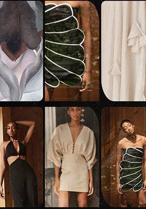 La flor fantasma florece en cada detalle, donde la transparencia y el movimiento capturan la esencia de lo efímero. Mediante el drapeado de tejidos ligeros y vaporosos, la colección fusiona fluidez y precisión, creando siluetas que fluyen a la perfección. La suavidad de las formas se une a la audacia de la simplicidad, mientras que cada pieza refleja una versión sutil, fresca y contemporánea de la belleza. Una interpretación moderna de la naturaleza, libre e ilimitada.