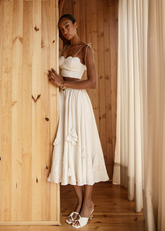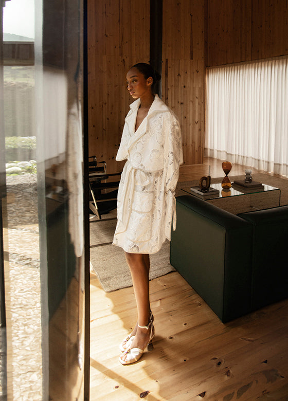 Diseñada para escapadas soleadas y una elegancia natural, Ghost Flower se adapta al ritmo de la temporada. Perfecta para brunchs con brisa en el jardín, paseos junto al mar en la hora dorada o tardes llenas de arte en la ciudad, cada pieza se integra a la perfección en momentos de serena belleza. Ya sea paseando por un refugio costero o disfrutando de una velada a la luz de las velas, esta colección encarna la libertad: suave pero audaz, efímera pero inolvidable.