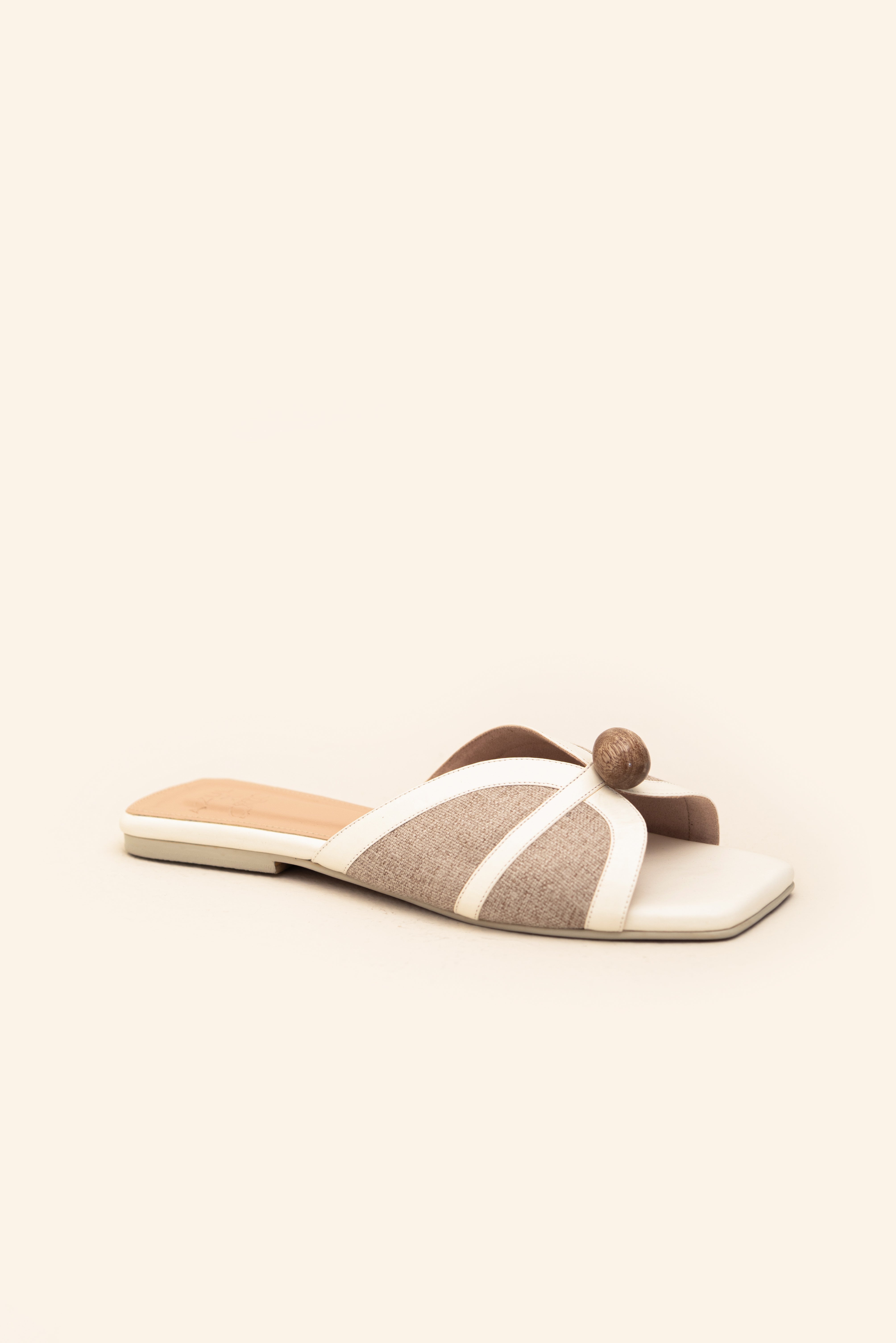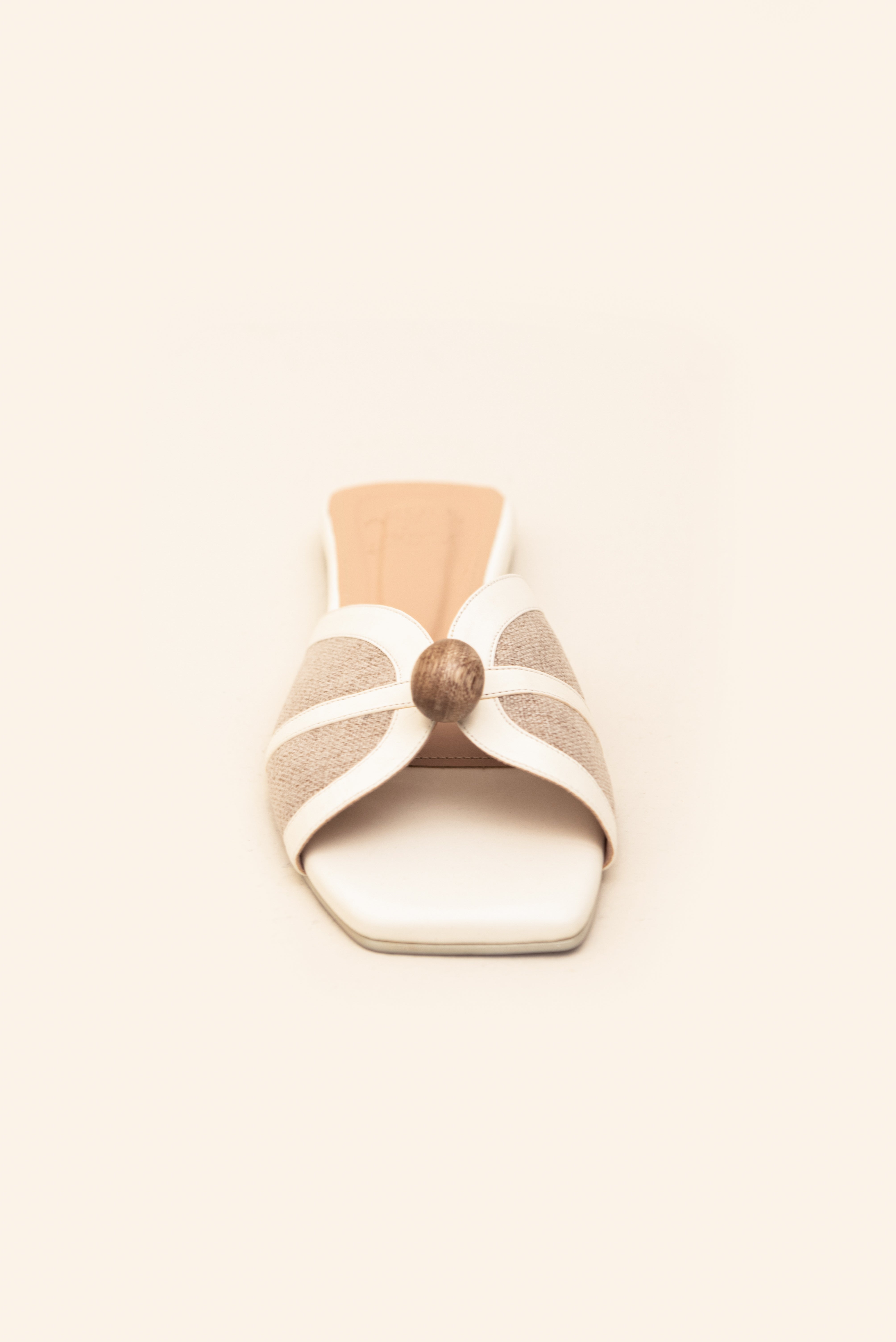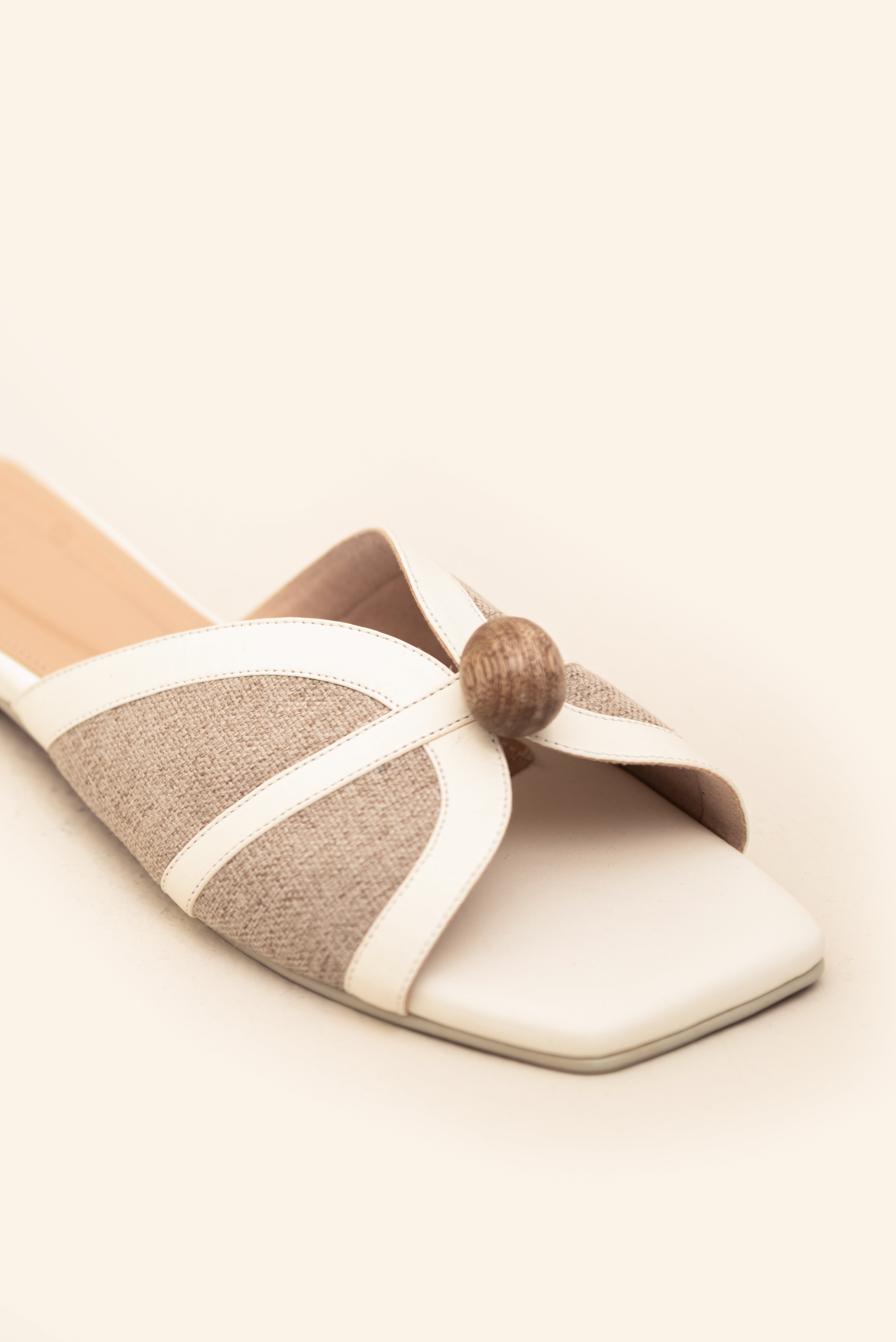 Fáciles, desenfadados y frescos sin esfuerzo. Las BIBA FLATS IVORY combinan el lino natural y la lujosa piel Ivory para conseguir la mezcla perfecta de casualidad y elegancia;