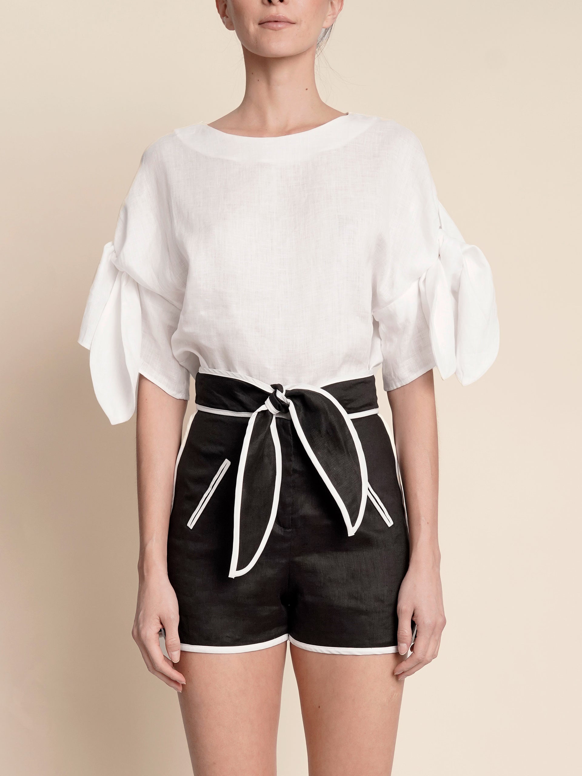 La blusa Margarita es una encantadora camiseta de lino con corte cuadrado que irradia una elegancia natural. Su clásico cuello redondo le da un toque atemporal, mientras que los delicados lazos en las mangas le aportan un toque de sofisticación y alegría. Confeccionada con atención al detalle y la comodidad, esta blusa realza cualquier conjunto informal con su estética relajada y refinada.