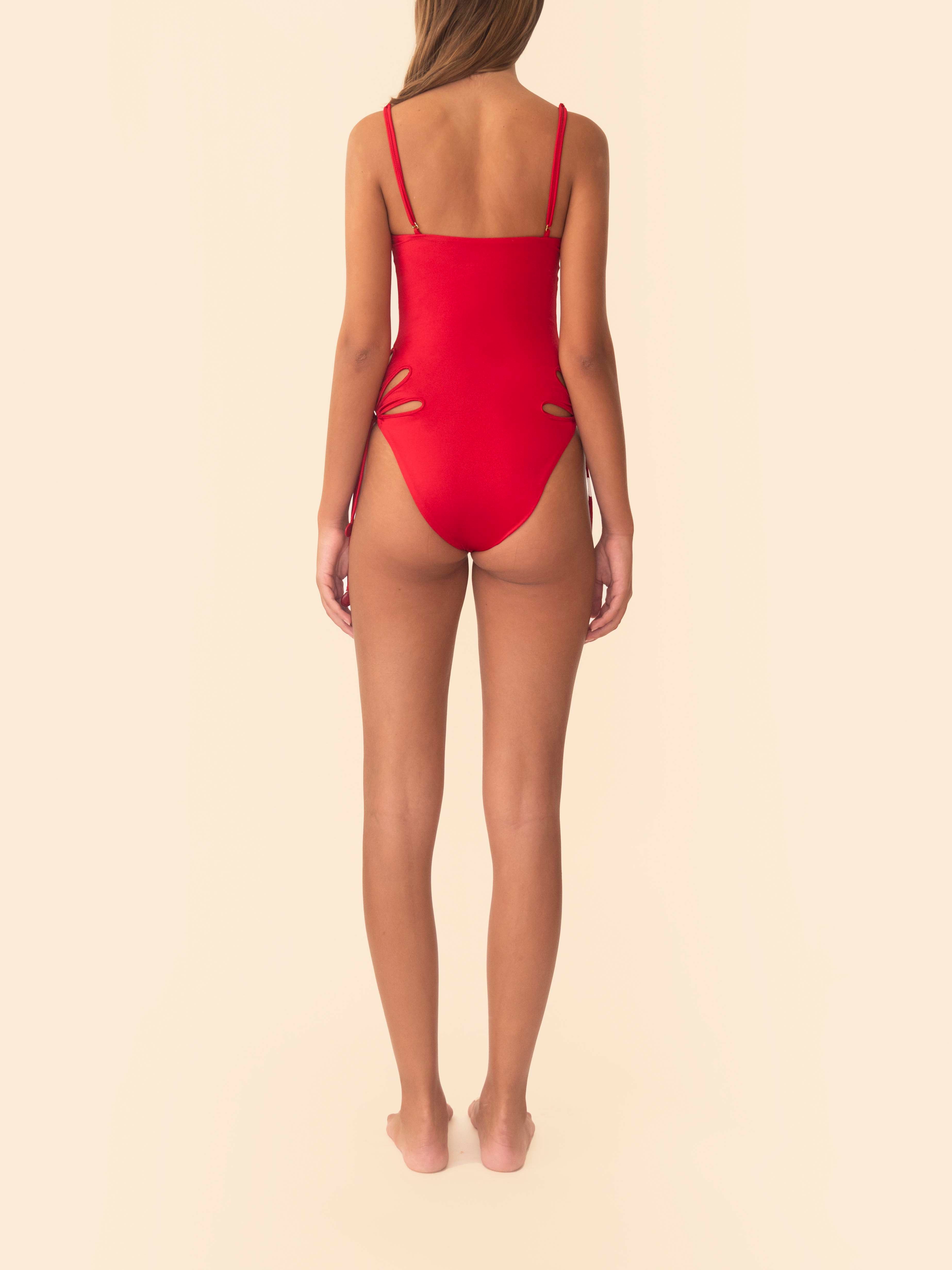 Naia Maillot fuses a classic silhouette with a modern graphic touch. Crafted in cherry red, it features scalloped side cut-outs that define the waist and create a clean, balanced shape.