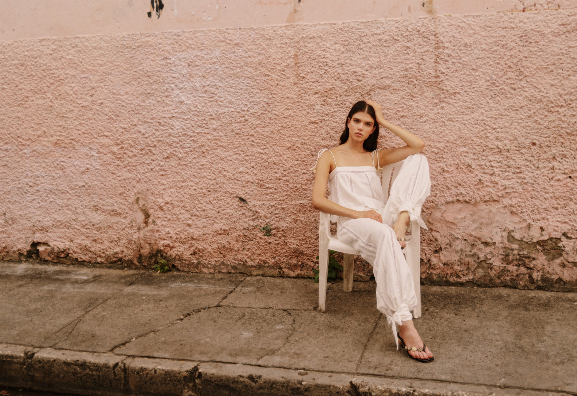 She unfolds like a daydream, breathing in the nostalgia of the coast, where curves and sun-washed surfaces drift through the warm air.