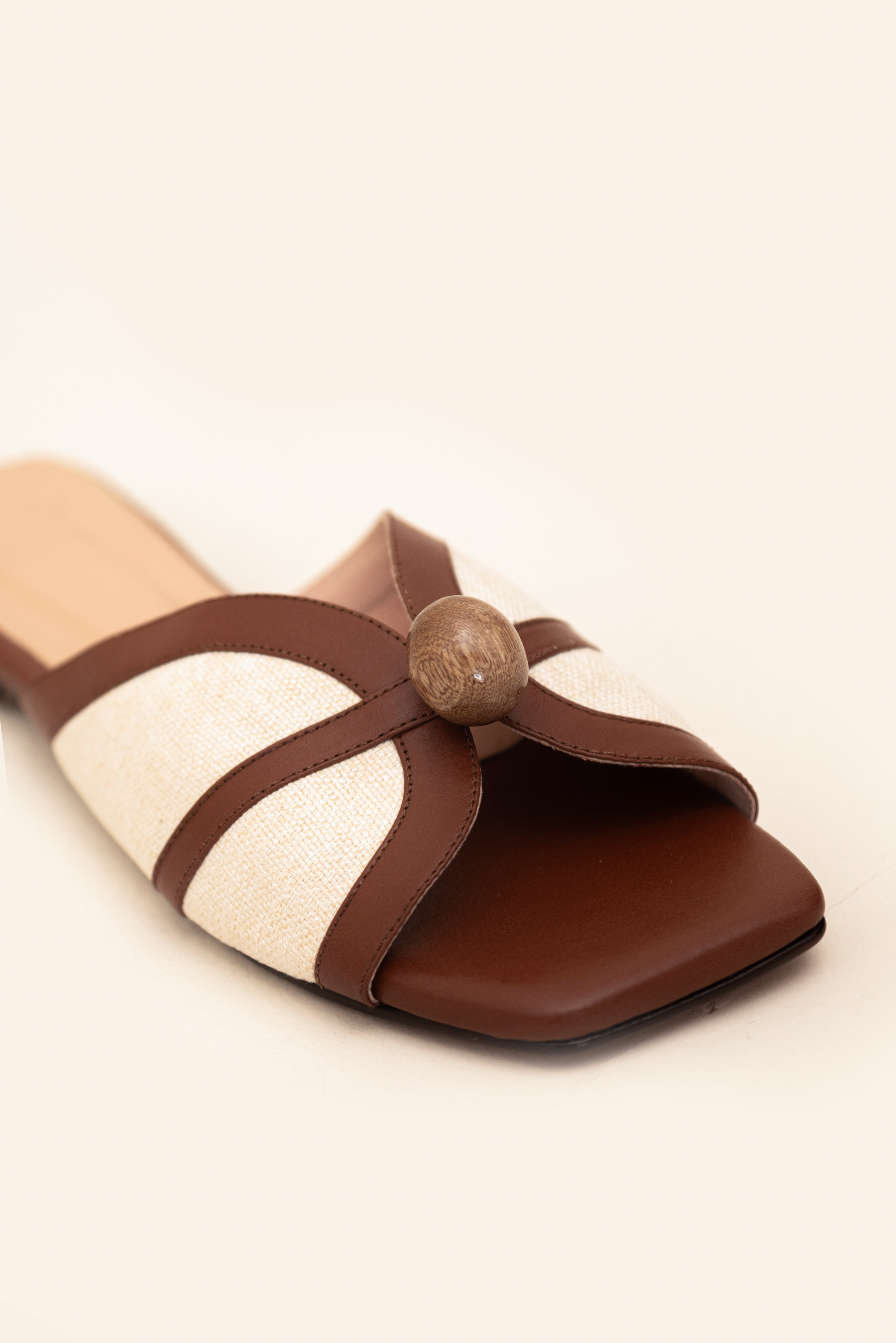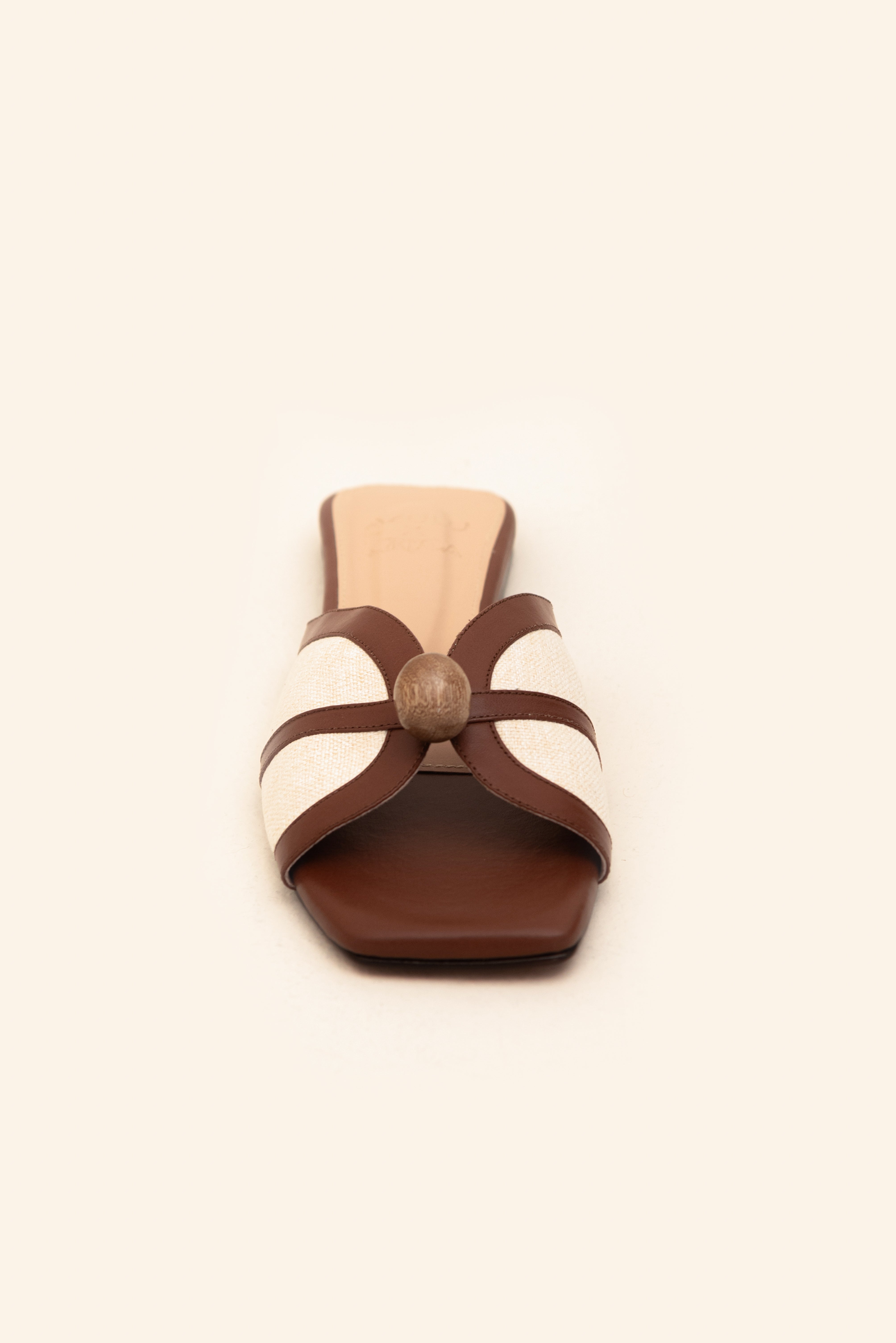 Easy, breezy, and effortlessly cool. The BIBA FLATS BROWN blend natural linen and luxe brown leather for that perfect mix of casual and elevated.