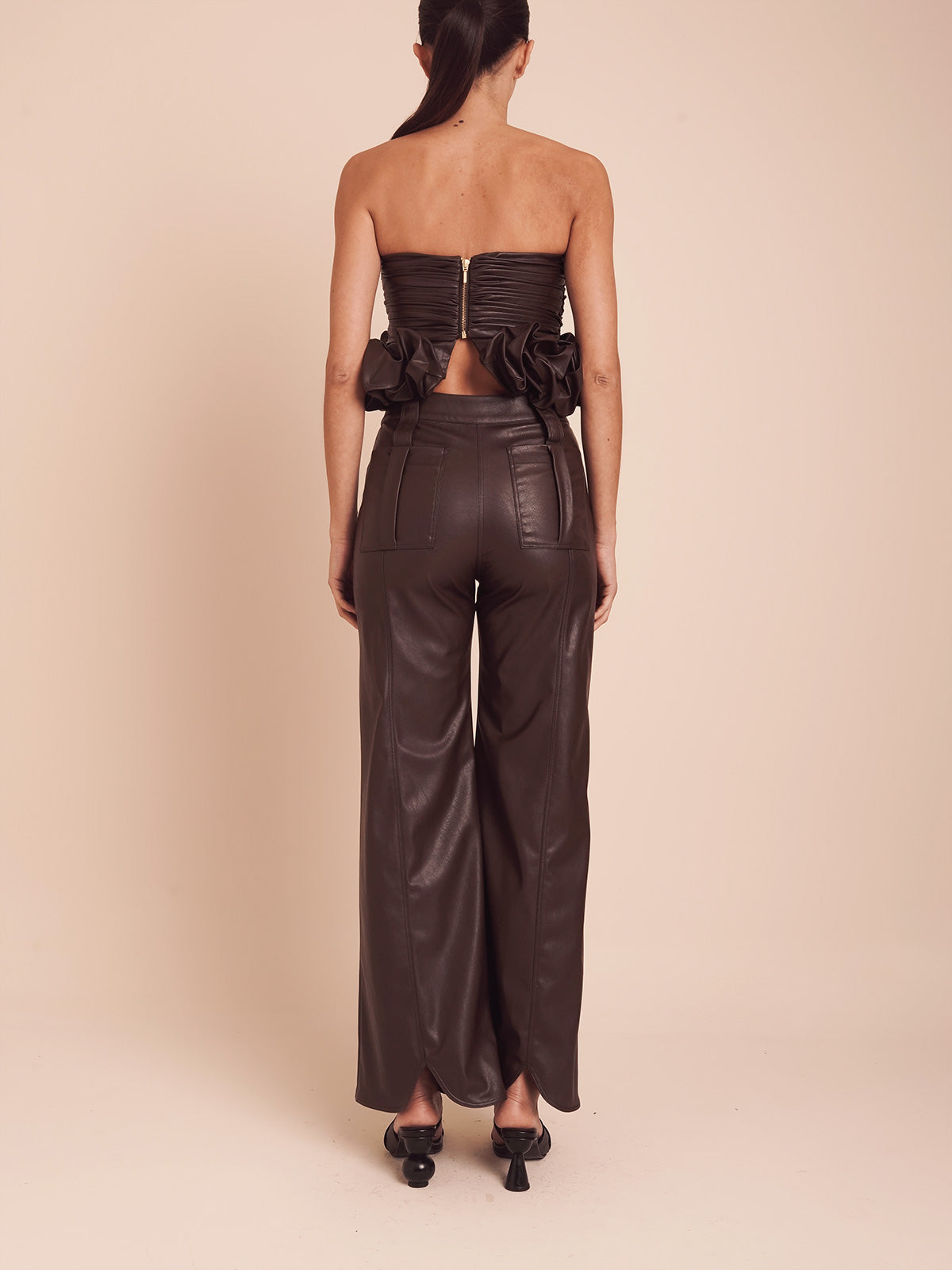 Perfect for both day-to-night dressing, these pants pair effortlessly with structured tops or statement blouses, making them a versatile wardrobe staple in a rich espresso hue.